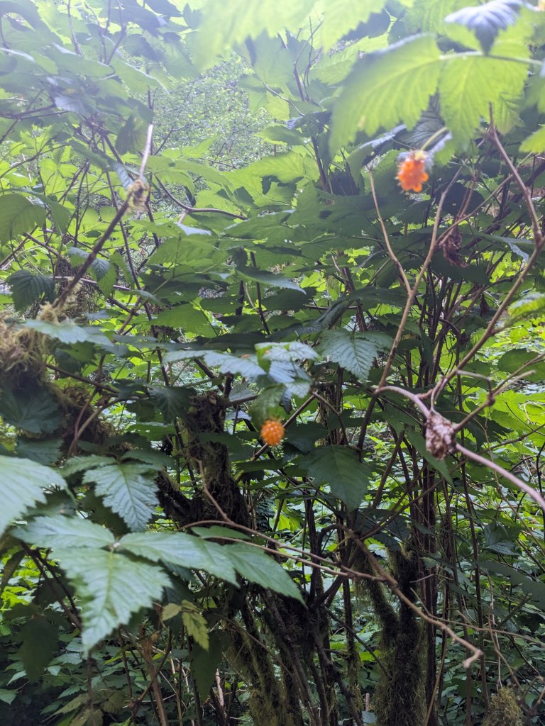 The hiking is fairly pleasant and for the most part not too difficult. There are salmonberry bushes at the time of that I did the hike, but a lot of them had already been picked. The berries are pleasant to eat and have a mild citrus flavor, at least according to my palette.