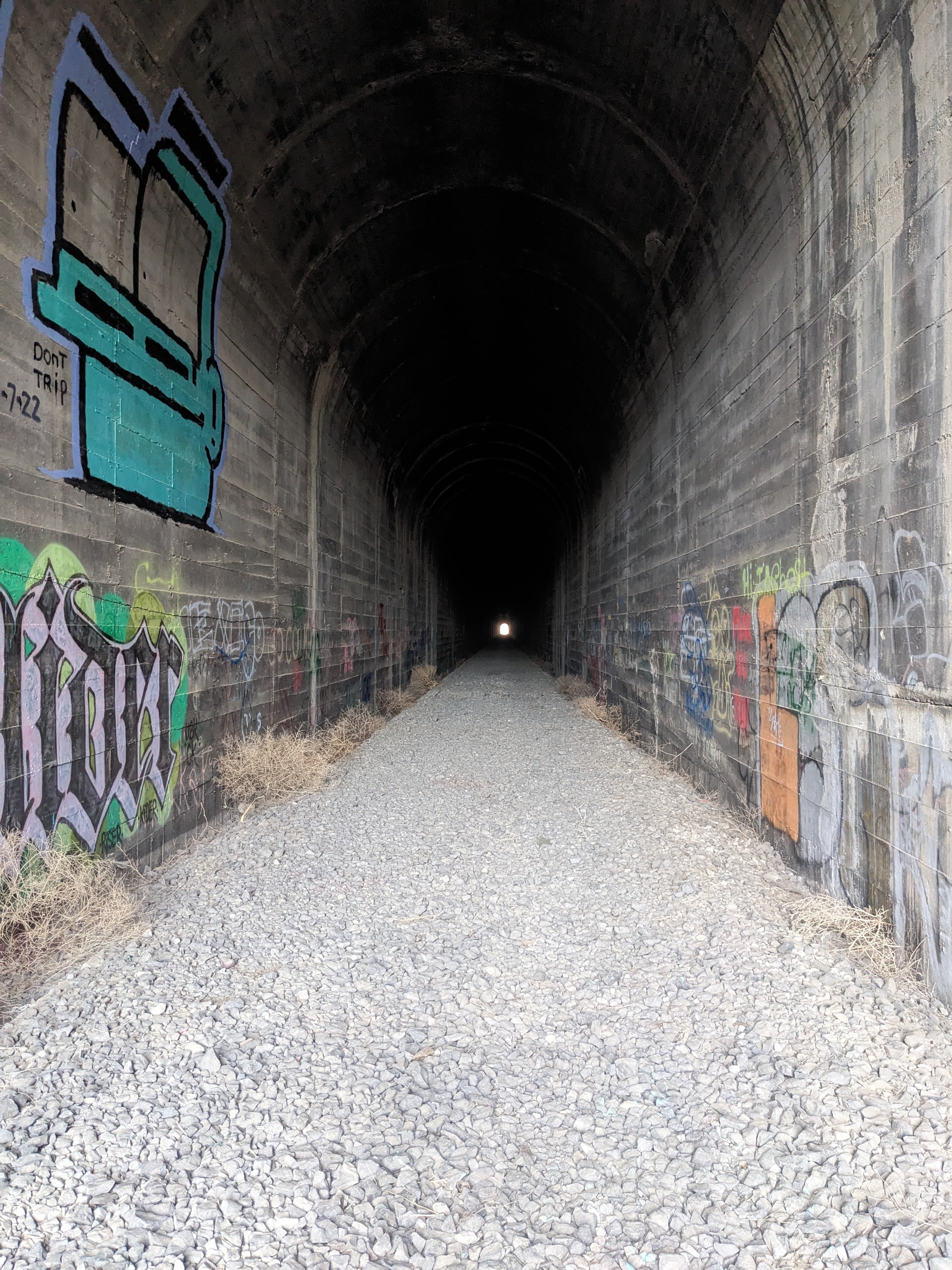 I found the Kahlotus Railroad Tunnel on Google maps while searching for trailheads to explore. If you approach Kahlotus, WA via WA State Hwy 260, turn south onto Spokane Ave and travel roughly 1/2 a mile outside town. There will be a pullout on the left side of the road where you can park and access the trail. If you pass the sign indicating that there is a left hand turn for Windust, you have gone too far. Accessing the parking spot is easy enough for anyone, but this trail is most definitely not handicap accessible. I did find an article online that a dude wrote about taking a couple days on 4″ wide tired mountain bikes, so it does appear that biking the trail is feasible. It is advised to go east from Pasco, WA up to Spokane, WA if you choose to do this because the winds are far worse than the grade for slowing you down and making the effort of the trip more difficult.