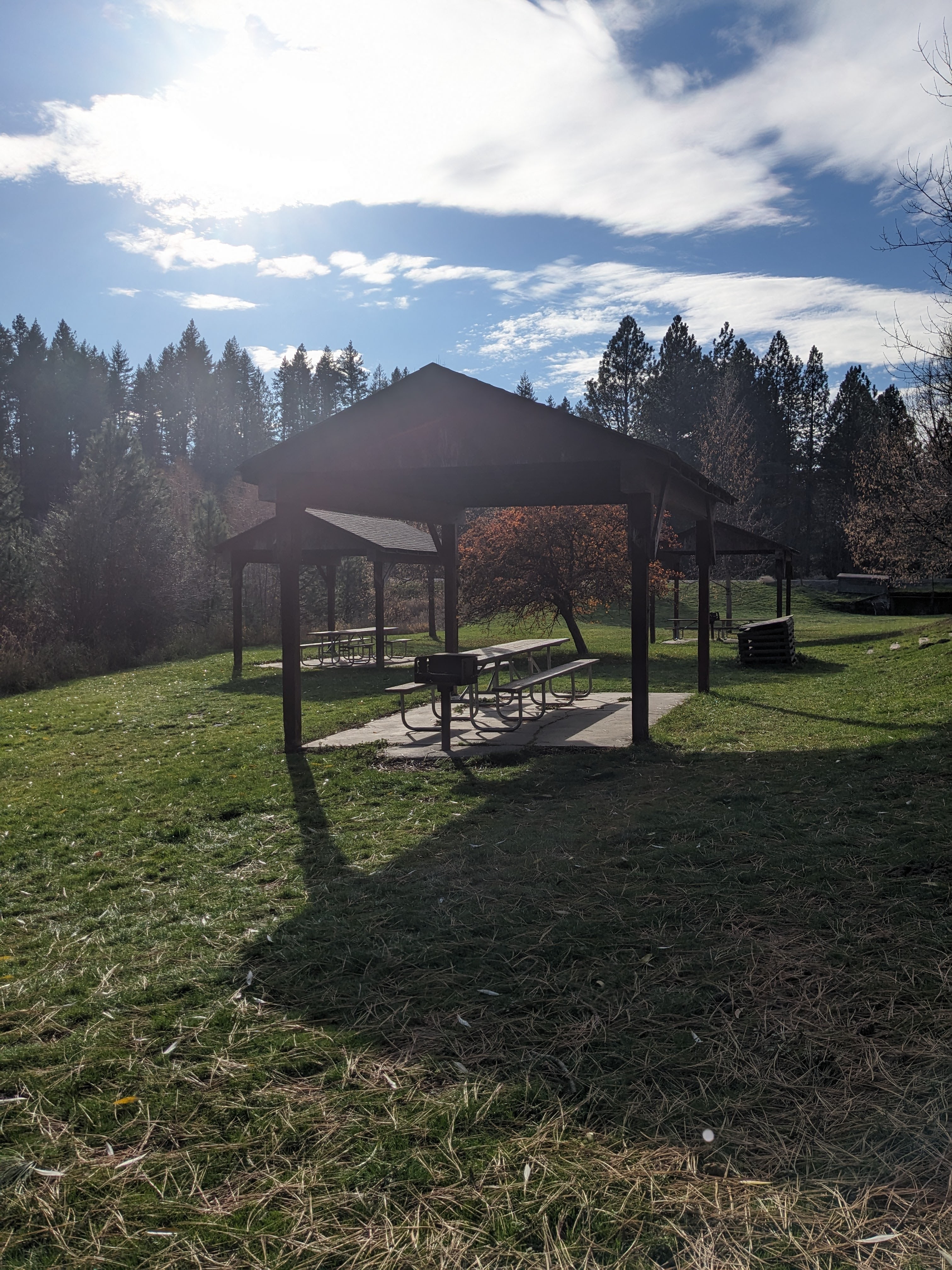 There are a few different ways to spend extra time at the park. If you are looking for a tent camping experience, the park has some space for tents. Registration is available at the Latah County Parks and Rec Department building. I thought I would be able to find pricing on the official website, but that proves to be untrue. A different source lists tent pricing at $10 a night, $5 for seniors and free for disabled veterans. I do not think that the tent camping area offers much in the way of privacy either, if that matters to you as a camper. Each tent area offers a picnic table, fire pit, and seating around the fire. A vault toilet is a short walk away.