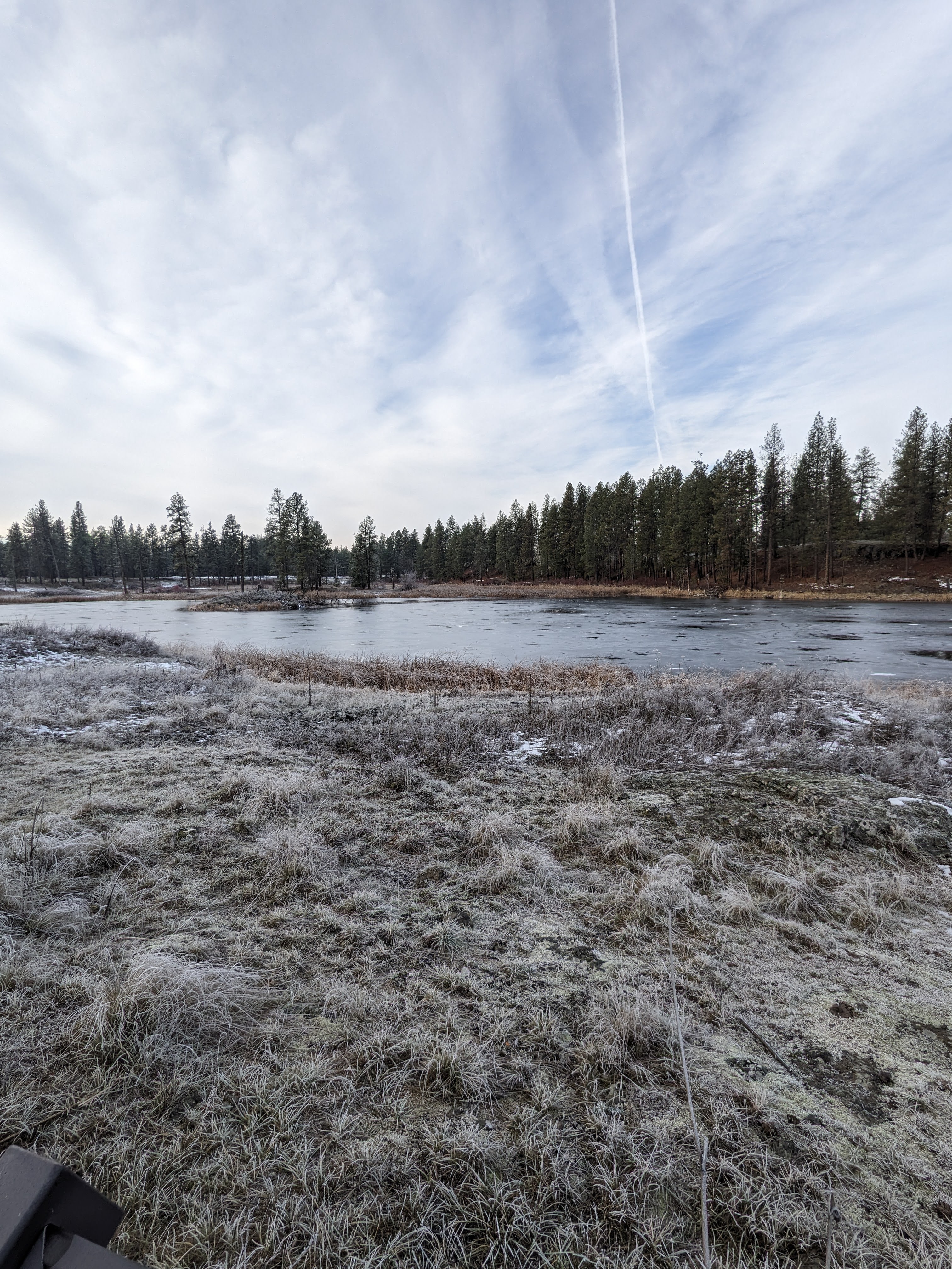 Despite the fact that the trail was dead straight, there was quite a lot of variety to the views offered. The scablands of the Columbia Plateau offer many pools of water, which bring a large variety of wildlife to the area. Unfortunately, it was only about 28 degrees out when I traversed this section, so I did not see much of the wildlife. The only birds that I saw were a group of geese flying by. I believe that I heard a wood pecker, but was unable to find it. As for tracks, I did see deer and elk tracks on the trail. In addition to the pools of water, there is a lot of marshland also.