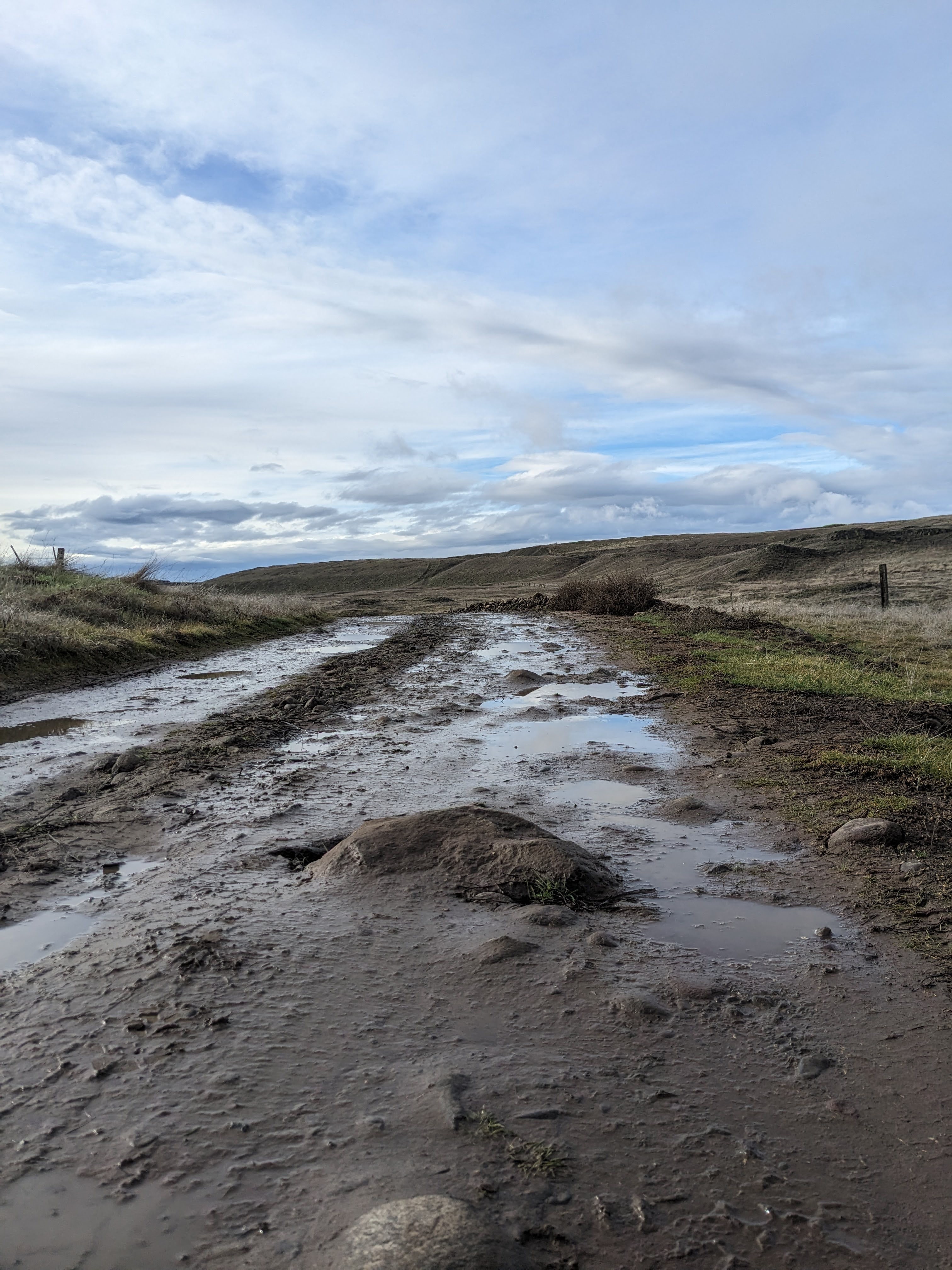 Breeden Falls is a waterfall on Rock Creek in Washington state. It is a little bit north of Towell Falls, and under the right conditions, you can most likely visit both falls in the same day. Breeden Falls is highly accessible, as you can drive right to it, if Breeden Road conditions are suitable to your vehicle. It is a dirt road, and when wet, it is pretty muddy and slick. I chose to park on Jordan-Knott Road and walk the 1.6 miles to the falls. I did not want to risk getting my car stuck. Ground clearance could be an issue at some points as the ruts are pretty deep and if slick, it might be difficult to stay on top and not slip down and high center your rig. On the bright side, when there is incline/decline on the road, you mostly have to deal with the large rocks in the road, and not the mud.