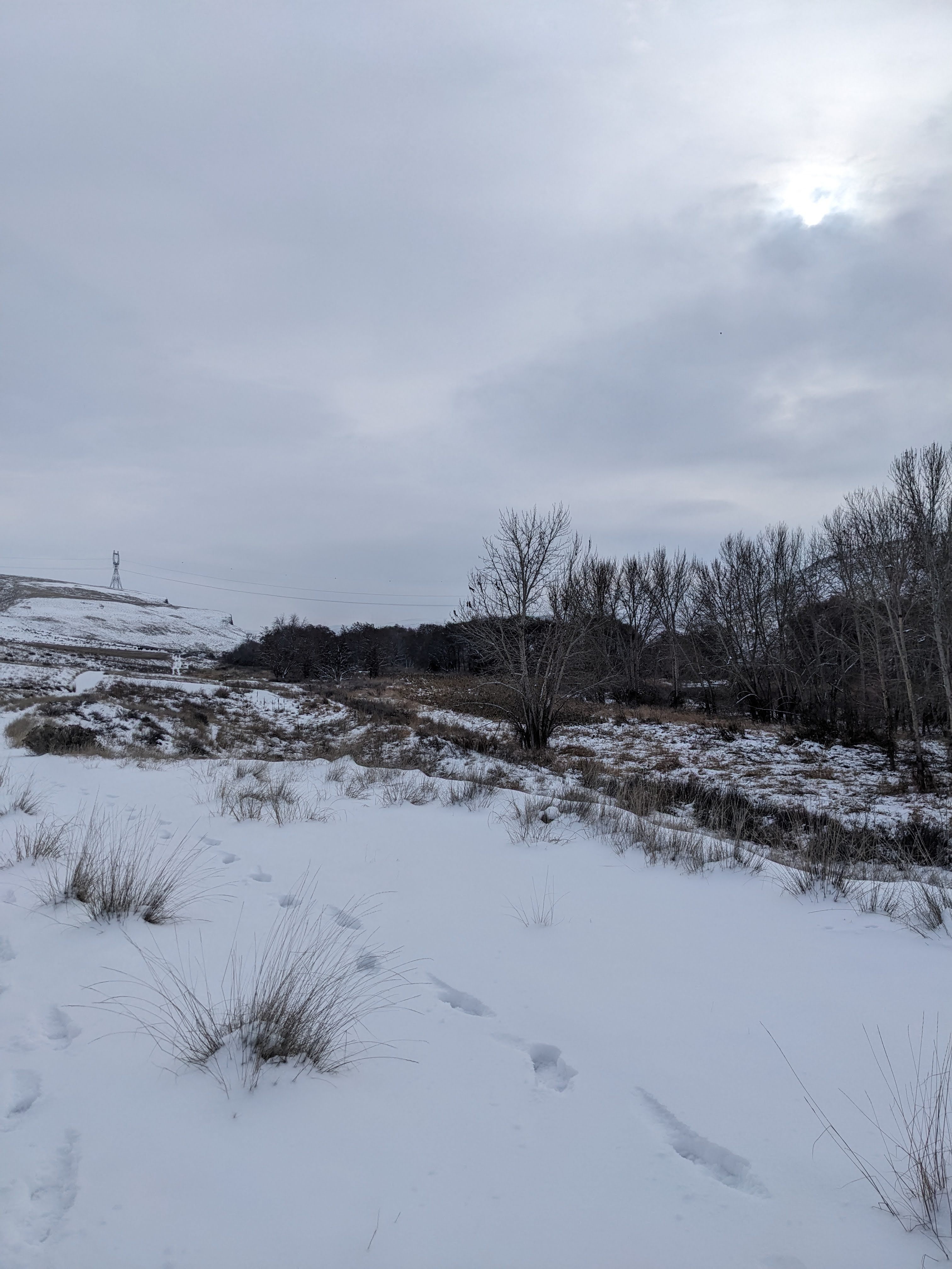 Overall, this was a very pleasant winter hike. There were no bugs, which I have read can be an issue in the warmer times of the year. The trail does fade out a little in a copse of trees and there appears to be a point where water gathers and was froze over, causing a bit of a traction issue. I believe that here is where others stated that the trail turned quite muddy. Asides from this section, the rest of the trail is easily navigable and provides some great views of the geography typical to Eastern Washington, as well as a pleasant little walk.