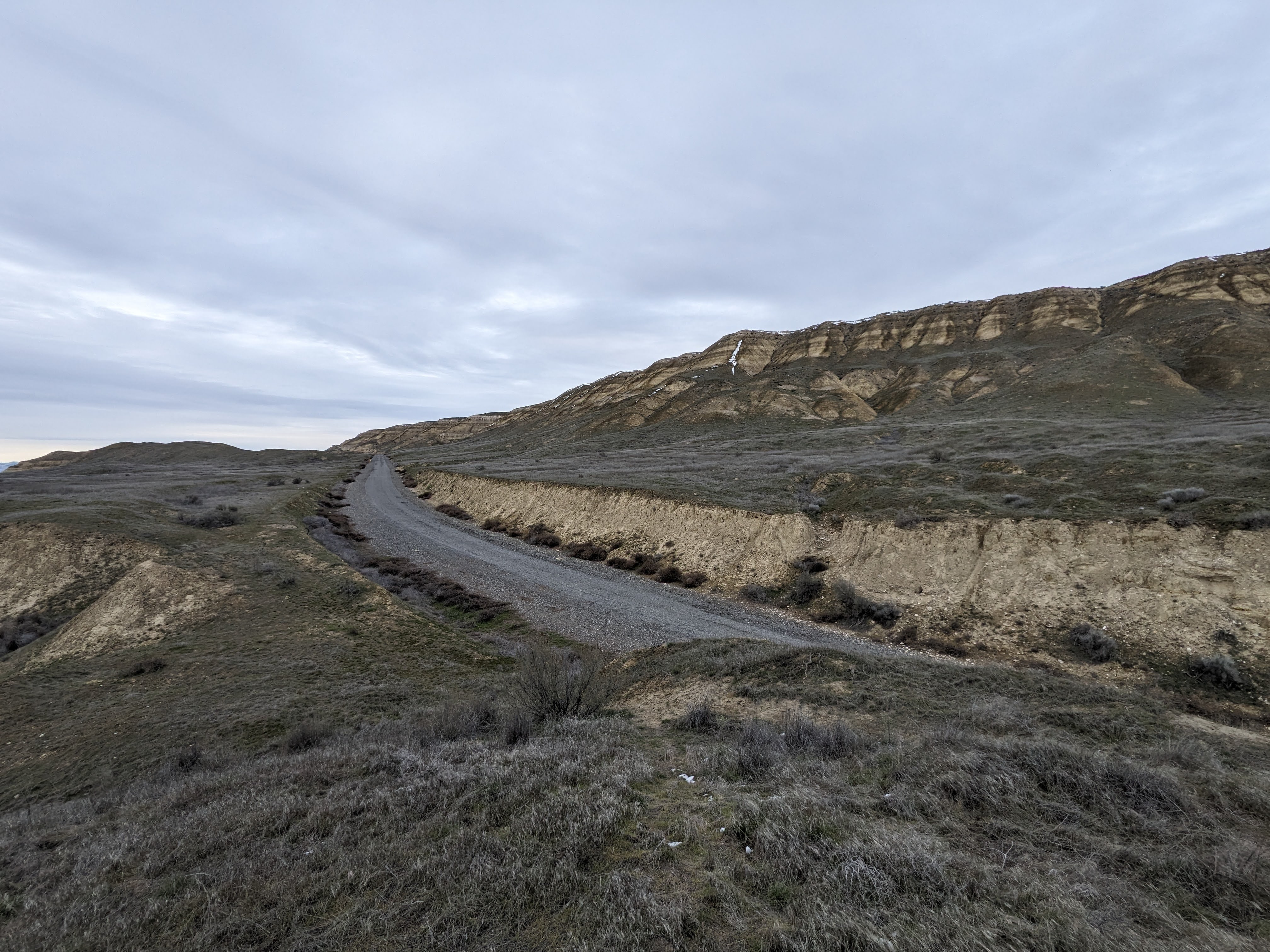 The trail at the overlook is referred to as the south slope. It is the remnants of an old paved road that leads down off the bluffs to along the river. You can cover about 10 miles in total if you follow the path as laid out by the Washington Trails Association (https://www.wta.org/go-hiking/hikes/white-bluffs-south ). We only went about 1.5 miles in because we were unaware of when the gate would shut, trapping us for the evening. To save you this concern, the gate opens 2 hours before sunrise and closes 2 hours after sunset. The path down to the river is a nice easy walk, but you begin to feel the incline towards the end of the return journey.
