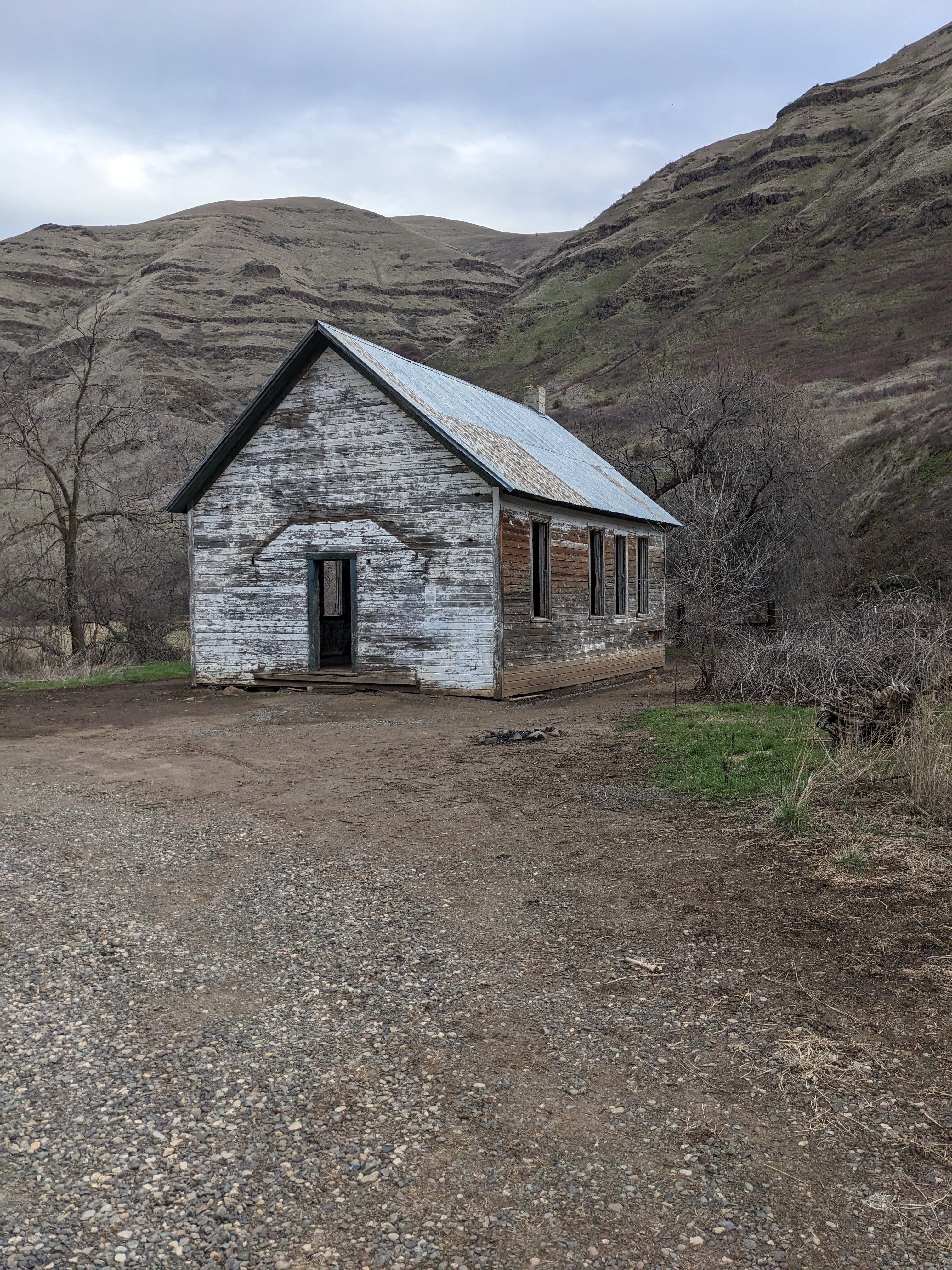 Rebecca and I decided to go hike the Green Gulch Trail in the Chief Joseph Wildlife Area in WA state. We arrived at the parking area around 11:30 in the morning and set out to hike the trail. There is an old school house in the parking lot, as well as a vault toilet. The school house has some interesting graffiti, as well as the expected juvenile stuff, but nothing else super exciting.
