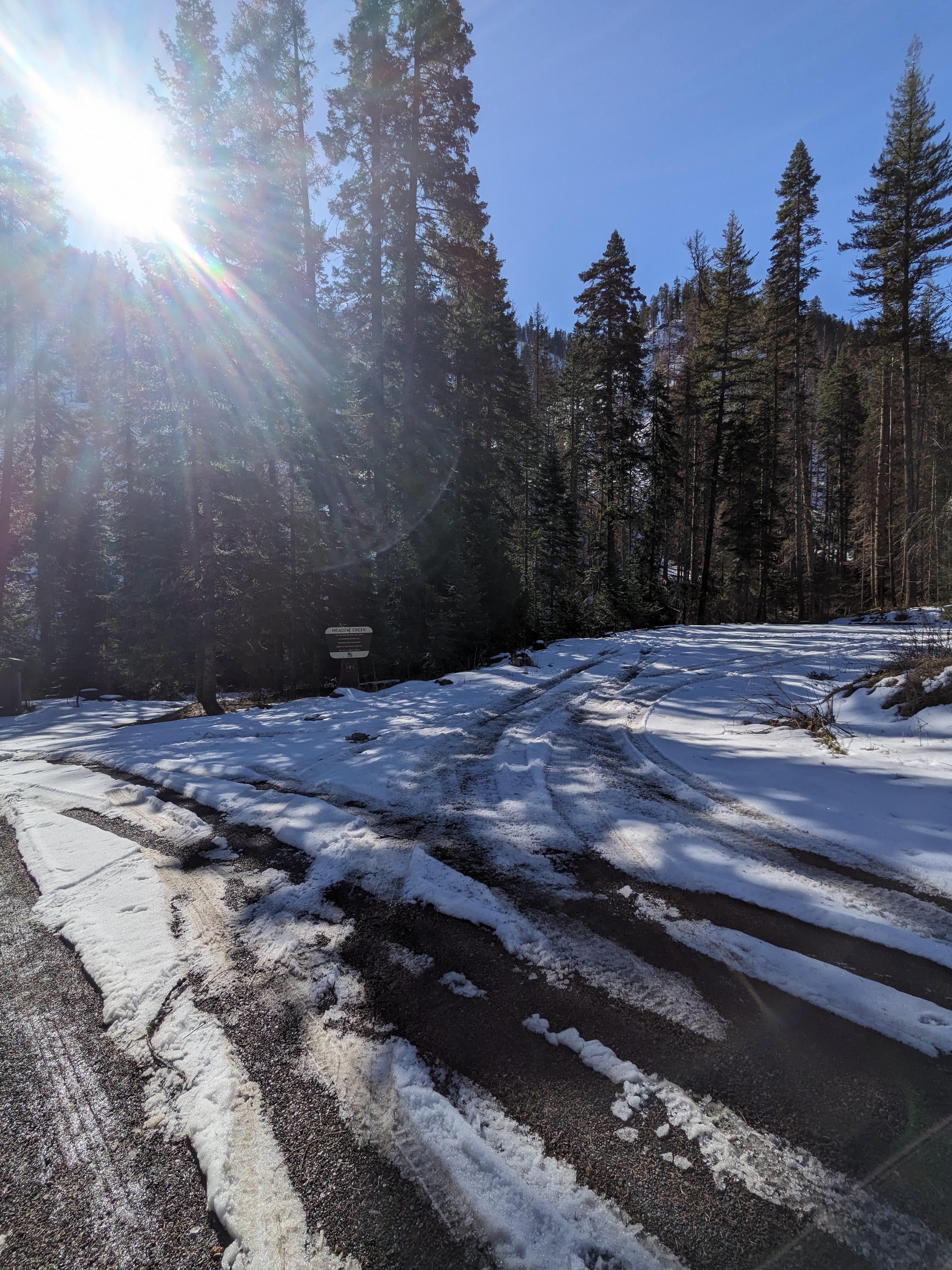 The sun shone brightly this weekend and temperatures rose into the high 50’s. I decided to take Rebecca to the Tucannon River and the area near where I camped towards the finish of the season last year. Looking at the map, I saw that Meadow Creek Trail was at the end of the road, so decided that would be the ideal place for us to go hiking. Turns out that it was not so ideal, as the trail was covered in snow and fallen trees still, but, we did manage to get in 3 miles of hiking, so it was a win.