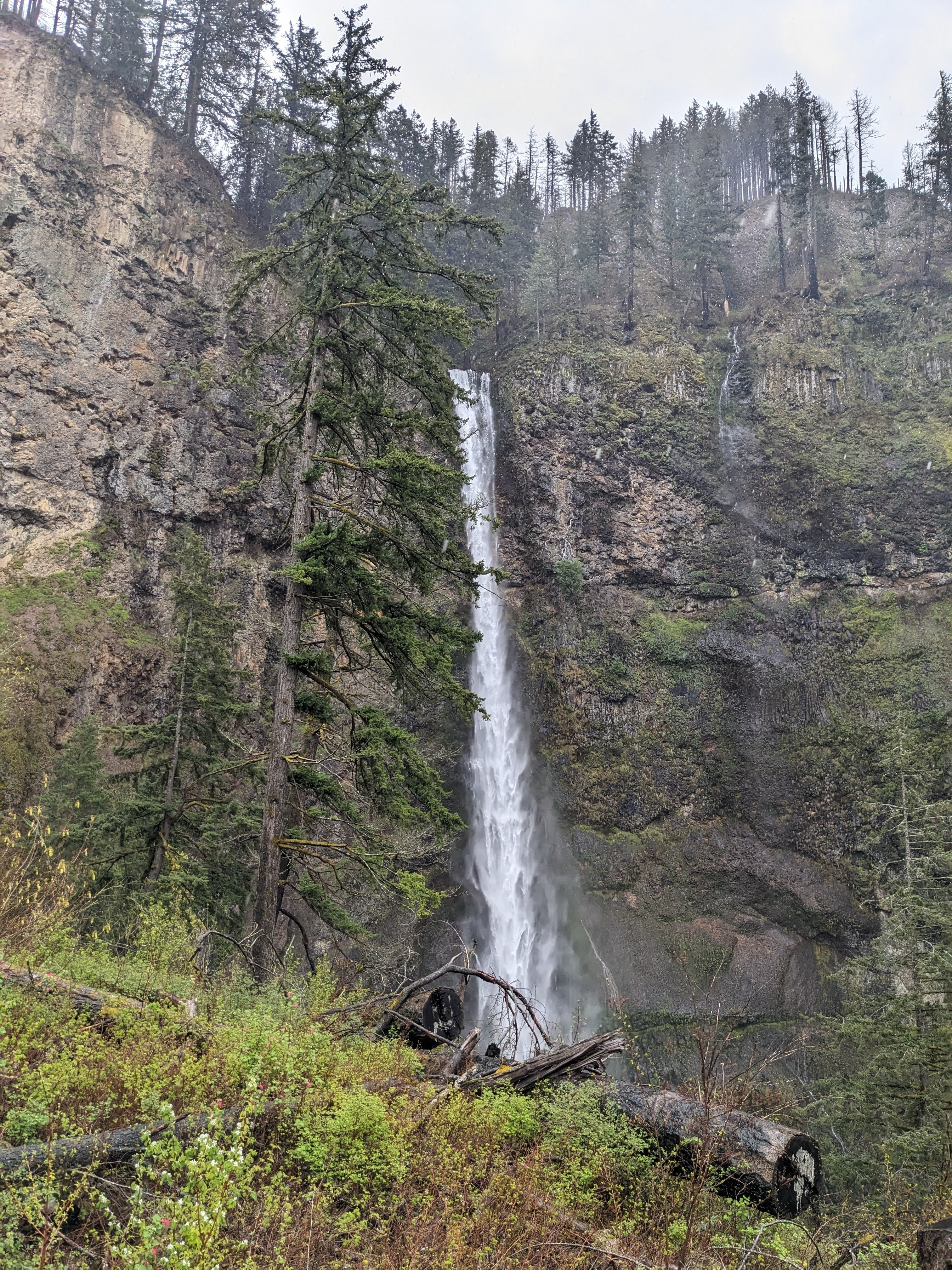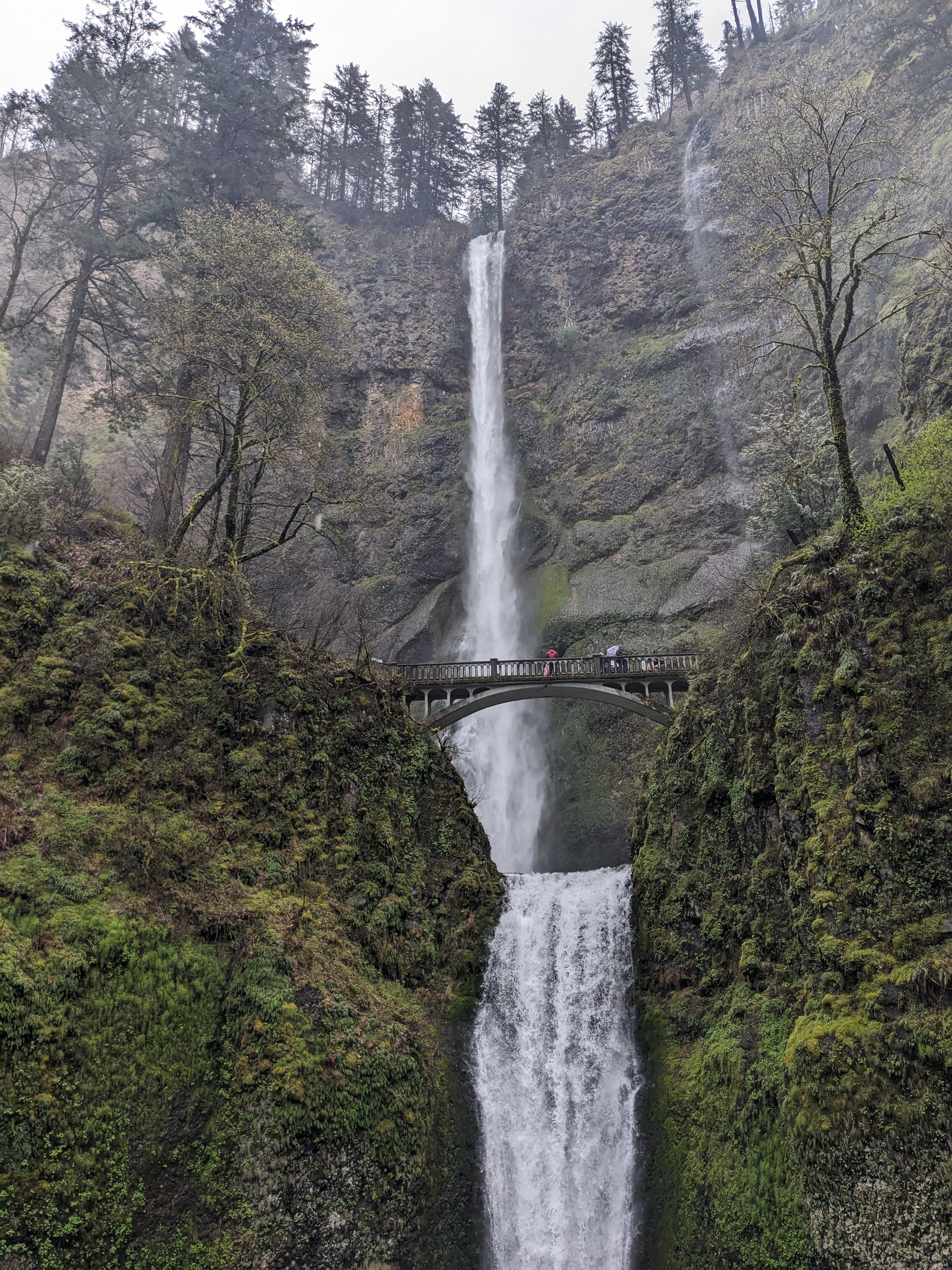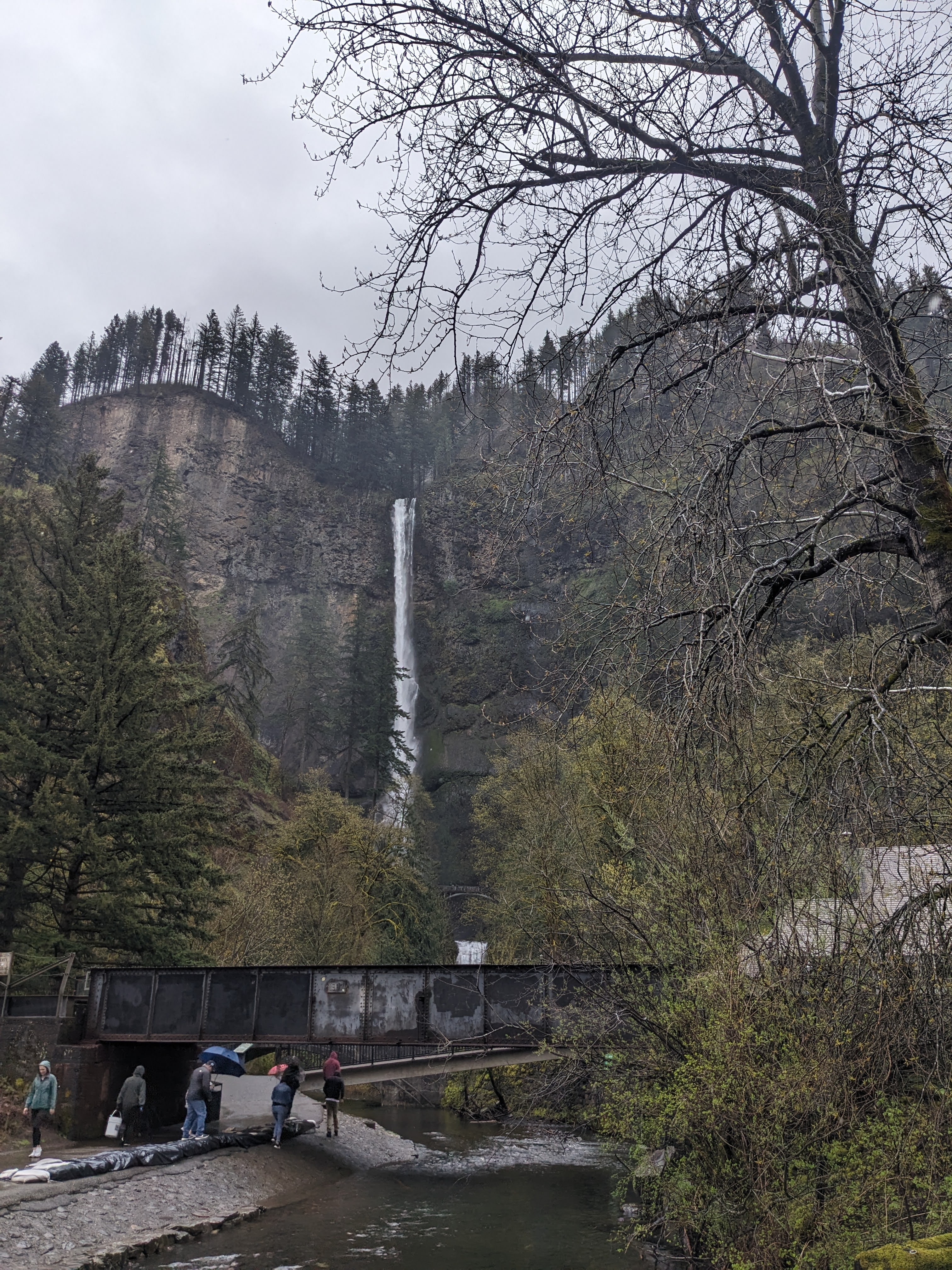 This weekend we had intended on going on the Multnomah-Wahkeena Loop Hike. Unfortunately, I did not check the weather for the right town near Multnomah Falls, and we found conditions to be less favorable than I enjoy. Temperatures were in the mid 40’s and it was raining. This meant that we only hiked up to the top of Multnomah Falls and then came back down. It was still an experience, and well worth the discomfort of being in the cold and damp rain.