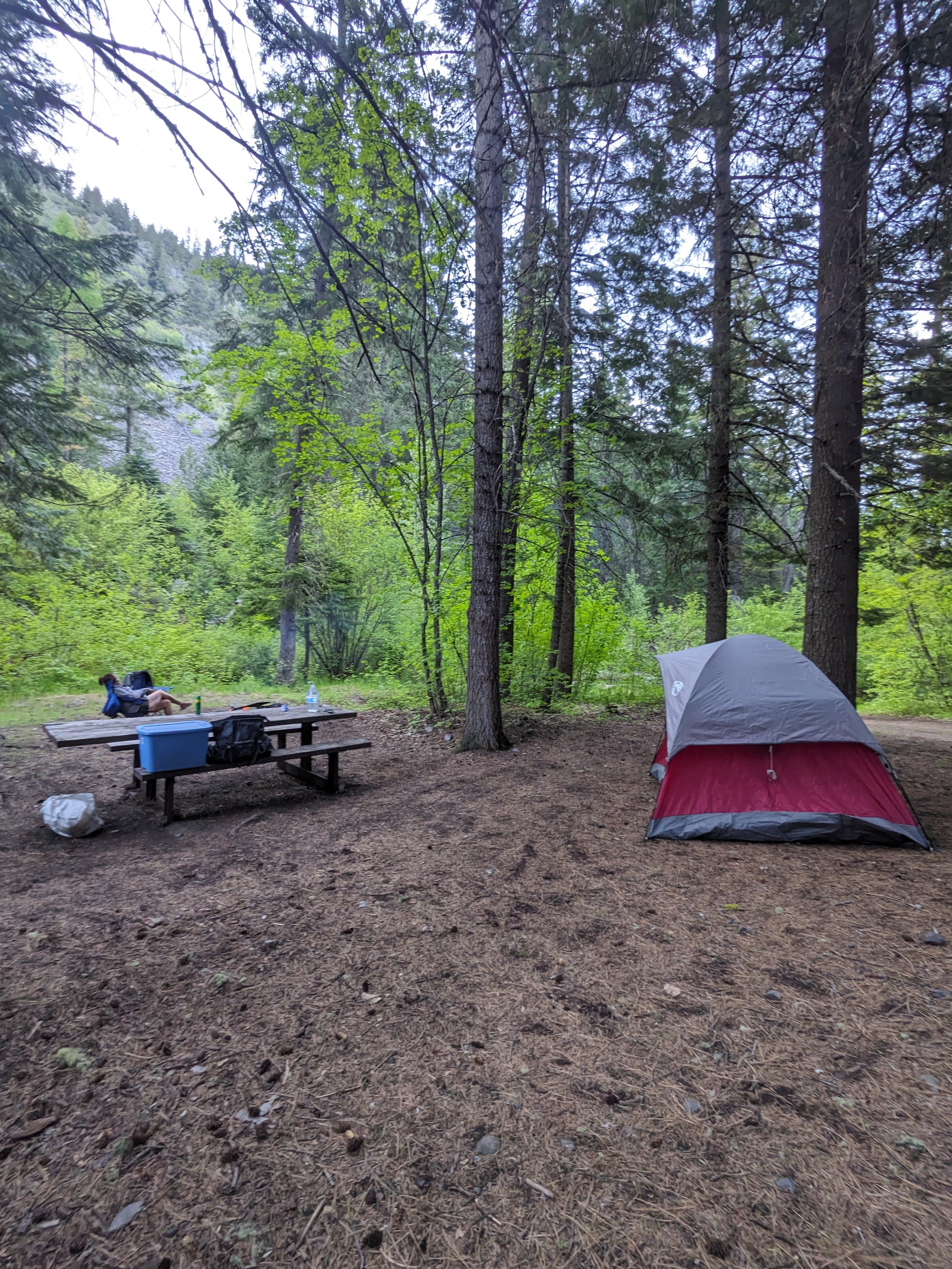 The first weekend of June found Rebecca and I camping in Northeast Oregon. Rebecca is familiar with this area and wanted to share with me a place that she had camped at with her kids a few years ago. We left home on a warm and sunny day and headed southwards to Enterprise, OR. Once in Enterprise, we grabbed some snacks and firewood for camp and then headed south again towards Joseph, OR on OR Hwy 82. We turned right onto Hurricane Creek Road and followed that for 7 miles to Hurricane Creek Campground. The road did turn to gravel several miles from the campground, but it was a decent enough road. With a little care, I think that even low clearance vehicles can manage the potholes and rocks in order to arrive with no damage. The forest service advises that the road to the campground is not suitable for low clearance trailers or RV’s. There are not many places to turn around a vehicle much larger than truck inside the campground either, so camping closer to the trailhead might be advisable if taking an RV or trailer.