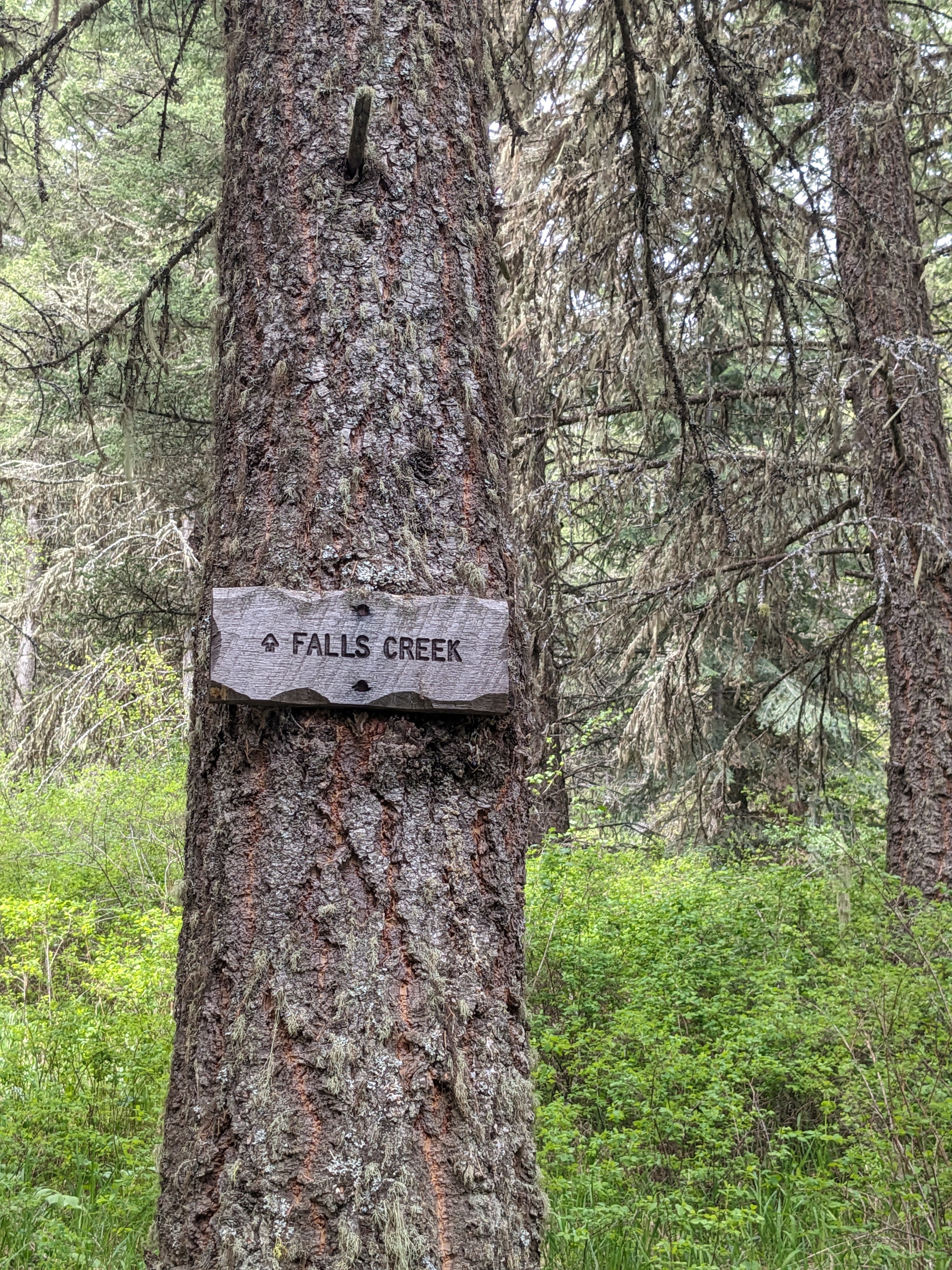 The trailhead for the hike is roughly half a mile from the campground. The big attraction here is the Hurricane Creek Trail, #1807. This trail appears to follow in close proximity to Hurricane Creek all the way to its’ source. From there, you can follow a few other trails and hike to the Eagle Cap summit. We hiked a much shorter hike than the length that would be required to reach Eagle Cap. It is roughly 1 mile round trip to Falls Creek Falls, and this is the hike that we embarked upon. The trail to the falls is narrow, but quite easy to see. Once we made it to the creek, we traversed rock and water to reach the base of the waterfall. It was a pretty decent fall while we were there, and the roar of the water made conversation a little more difficult than usual.