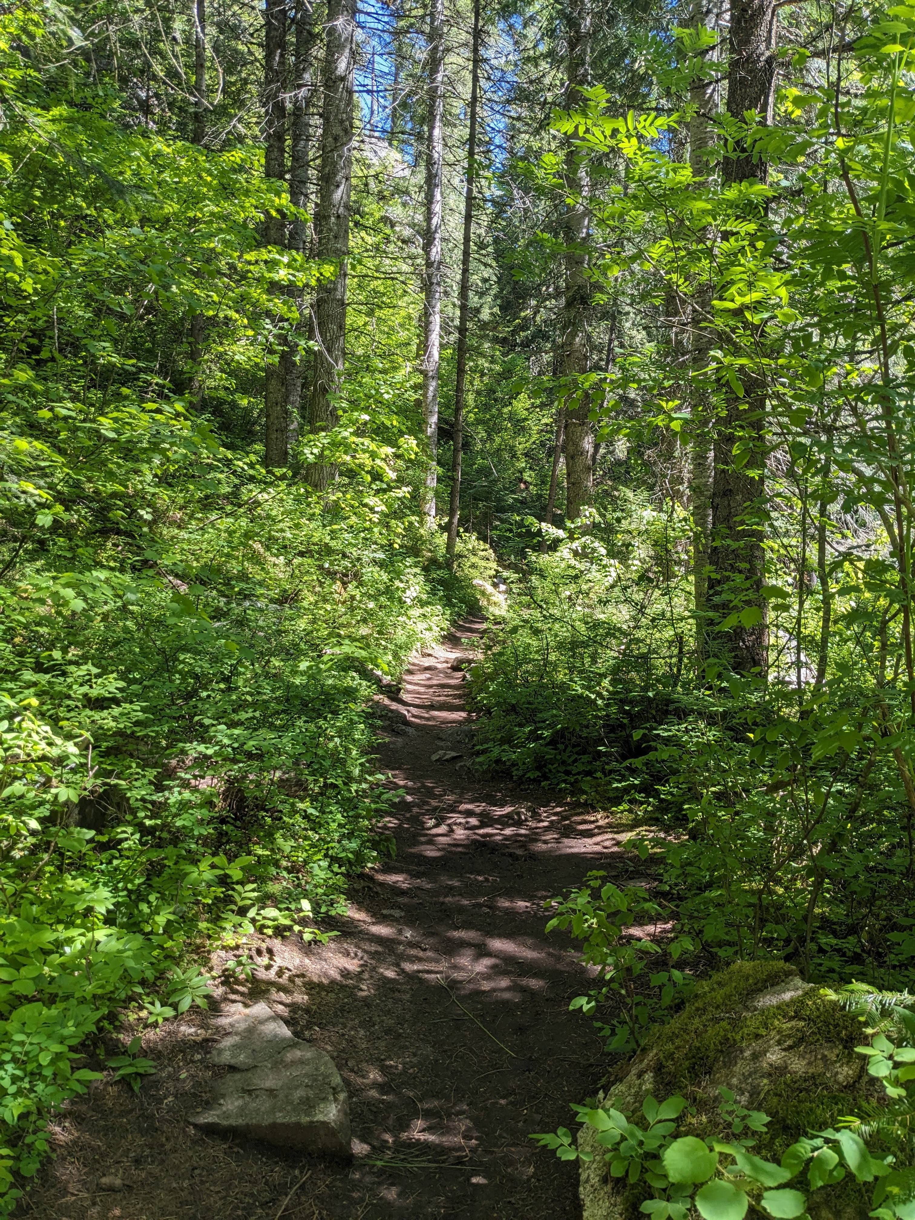 We chose to camp about 8 miles from the trailhead at Colgate Campground. This is a more primitive campground, lacking tables or fire pits, but there is a vault toilet in the area. There are no garbage services, so pack out your own garbage. There are about 6 campsites available. The Lochsa River flows besides the campground, with US Hwy 12 on the other side. As the highway is not that busy, the traffic noise is not that bad. The river was much louder. We enjoyed an easy night of rest and thoroughly enjoyed the mostly empty campground.