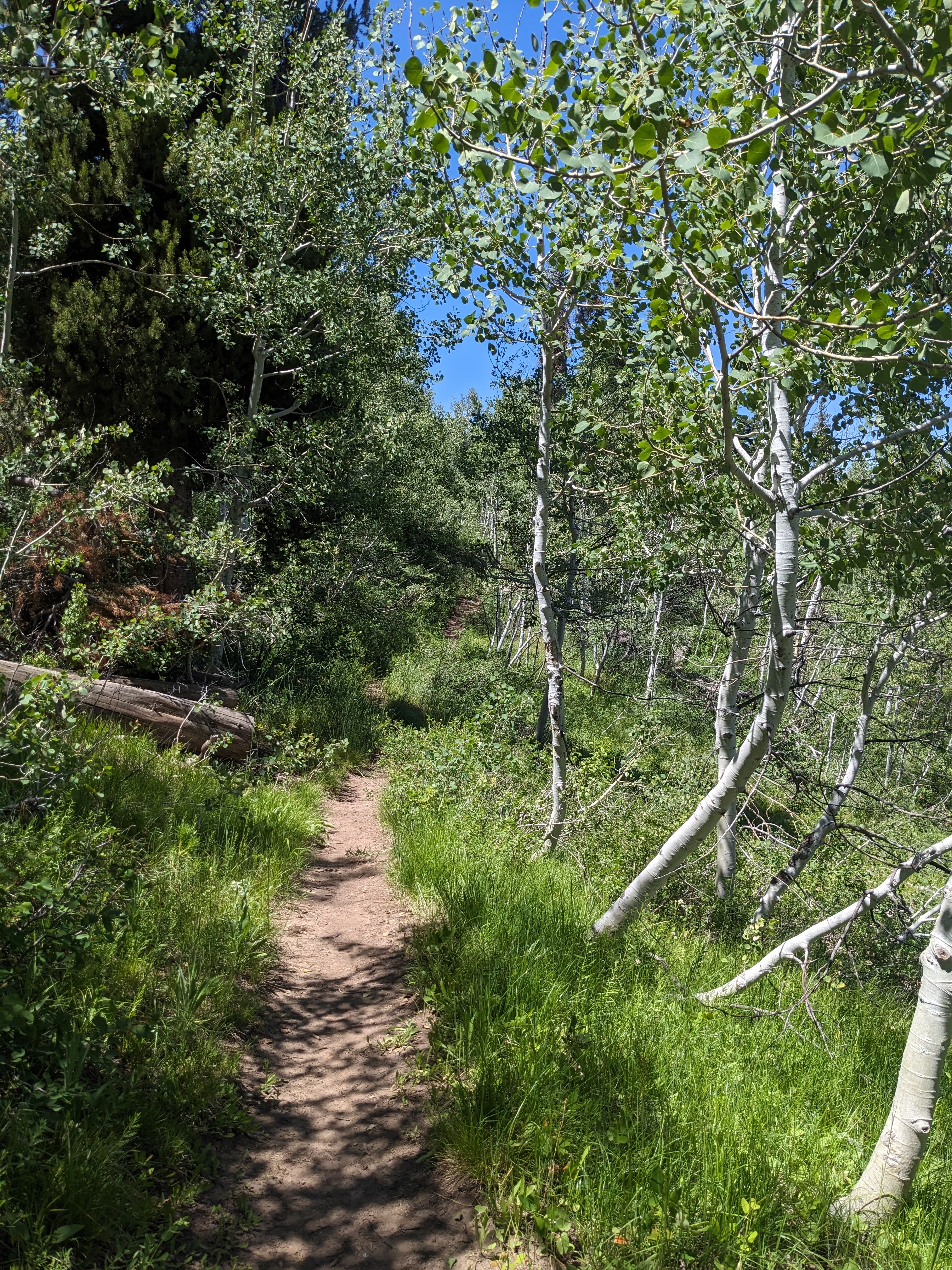 There is a creek near the campground, but while we were there, it did not have a lot of water flowing through it. There is a trail that leads out of both campsites #3 and #2 that takes you to a beaver dam if you follow far enough, but the water did not appear to be deep enough to swim in. I did, however, spot two fish in the water, so a little fly fishing might be a great way to pass a little time. There are a couple of campgrounds further down hill that had more water and holes that looked deep enough to get yourself fully wet in.