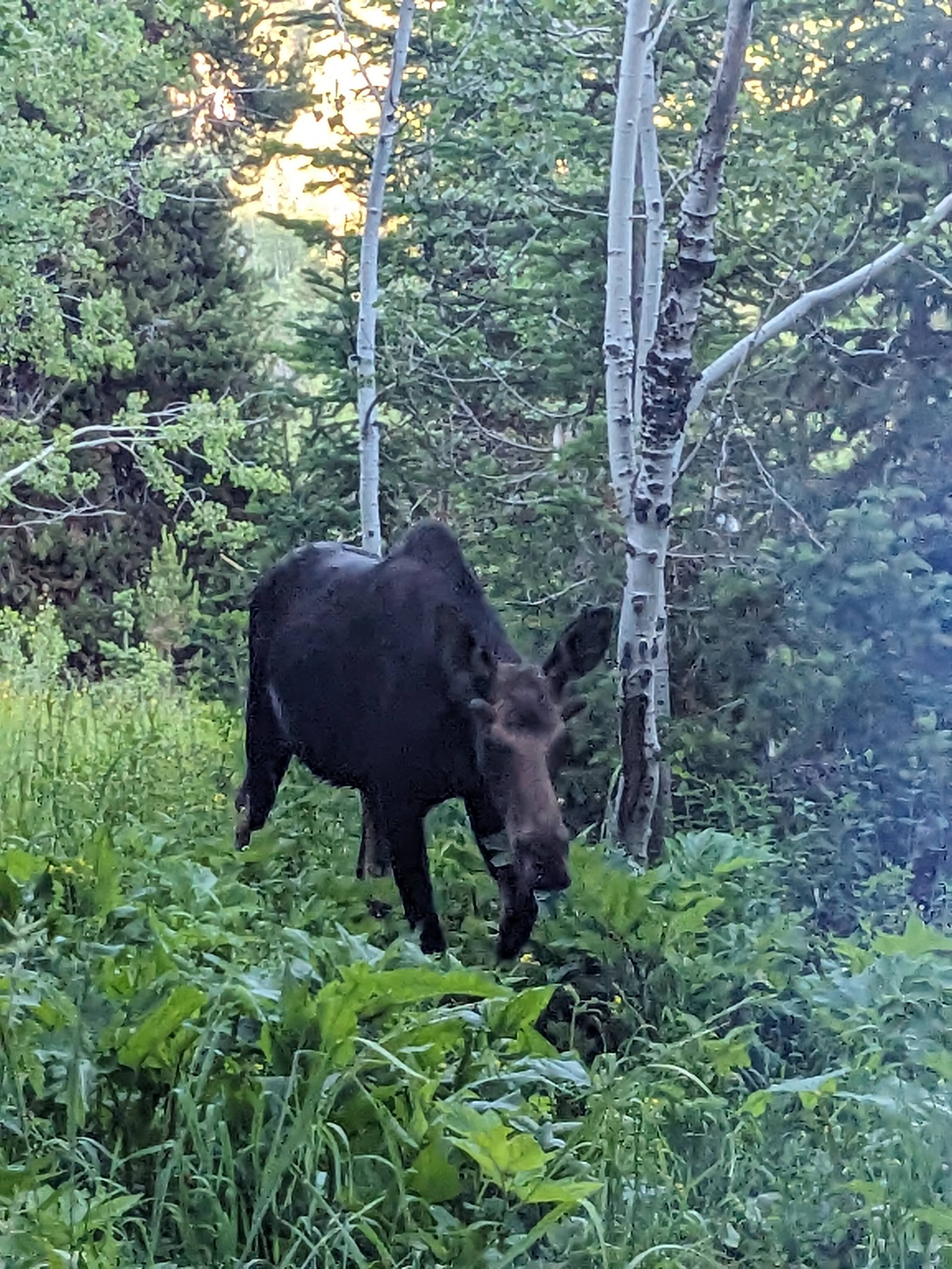 I would be remiss to not tell the tale of the moose that came to visit our camp. I do not know if this is typical to the area or not, but we had a very close encounter with what appeared to be a young moose on our last night camping. It stood and watched us from about 20 feet away for about a minute before casually walking around our camp and continuing up the valley. The next morning, a pair of them again walked around our camp as they headed down the valley. It was a very awesome experience, and I am glad that they were young and not protective mothers. Other wildlife that I saw included a red headed wood pecker, a humming bird, various other little birds, deer, chipmunks, and a skunk.