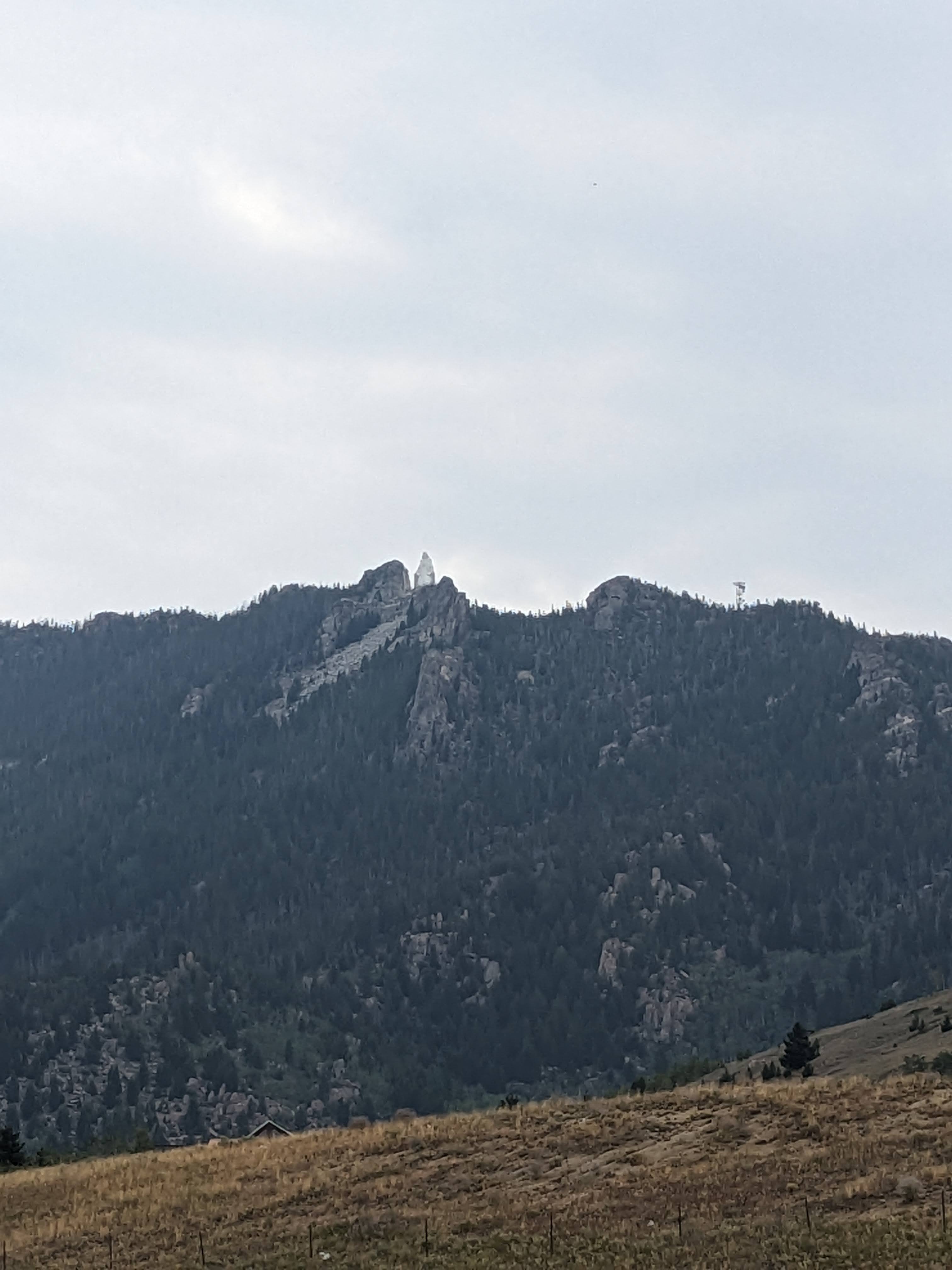 As we exited the mountains, the rains stopped again and we were allowed unrestrained visual access to the mountains south and west of Anaconda. I wanted to drive to Anaconda to show Rebecca the smoke stack there. The Anaconda smoke stack is quite large and impressive. It is visible from quite a ways and just dominates the landscape.
