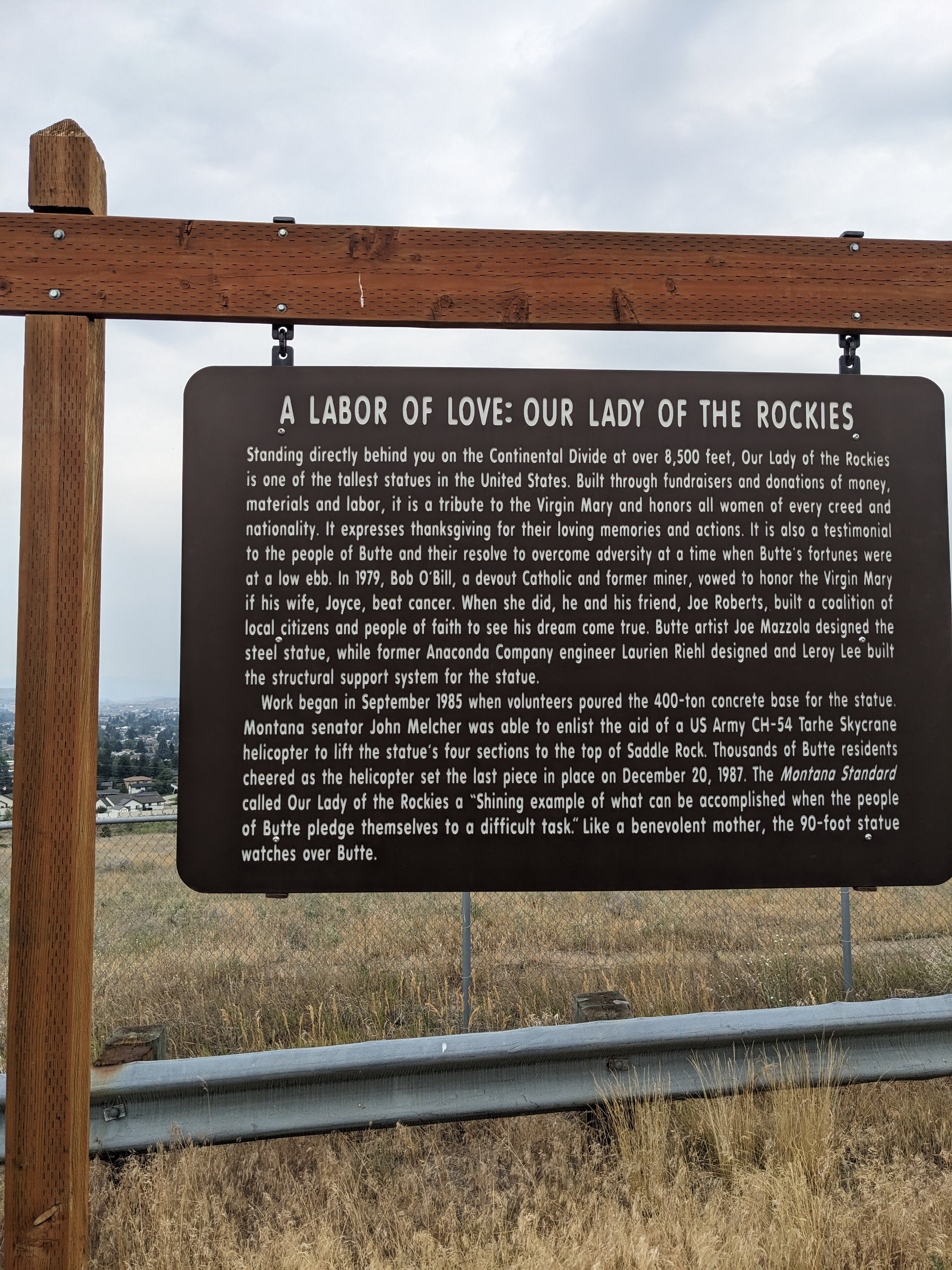 We traveled through Anaconda and continued to Butte, Montana. I told Rebecca that I wanted to show her the “Our Lady of the Rockies” statue, but then I also asked if she had ever seen the “Butte hole” and this got quite the laugh going once she realized that I was making a serious jest. She had not seen the “Butte hole”, so we were going to get to view two things in Butte. Of course, the “Butte hole” is actually the Berkely Pit. We hit I-15 north and found a point of interest pullout to get photos of the statue on top of the continental divide and find out more information about the Berkley Pit and copper mining in the area. The Berkley Pit is not as visible as it was the last time I was in Butte as it appears the mine is an active site again. Satisfied with pictures and knowledge gained, we set forth to make it home before dark.